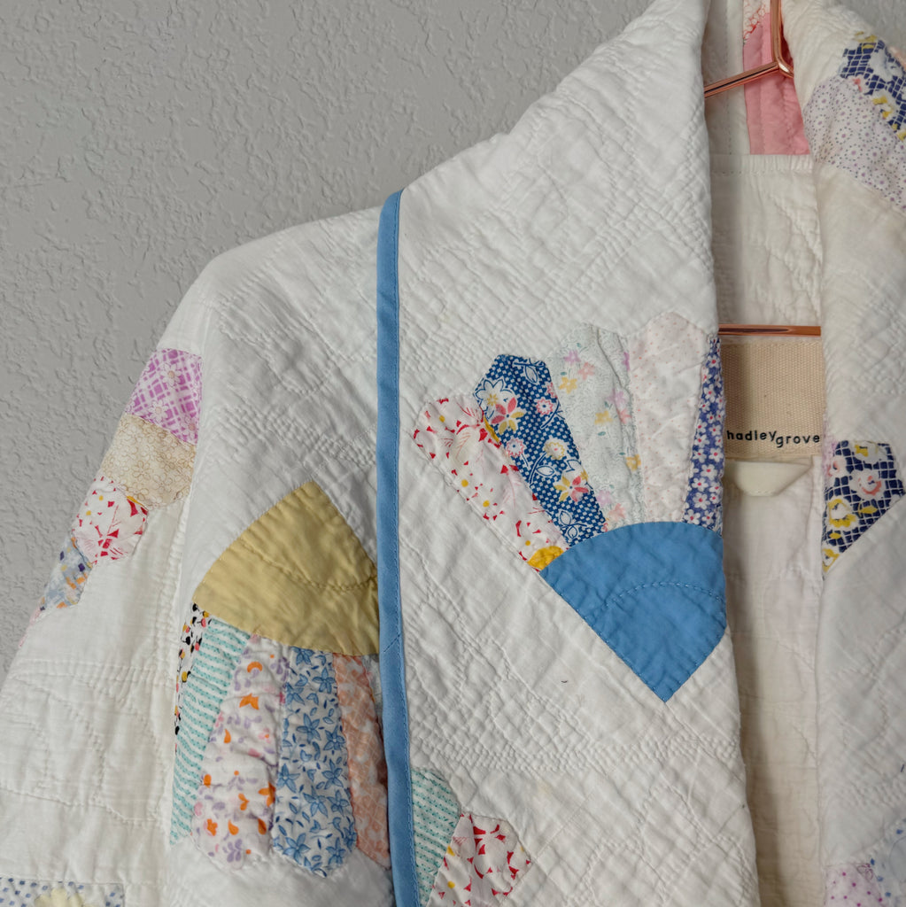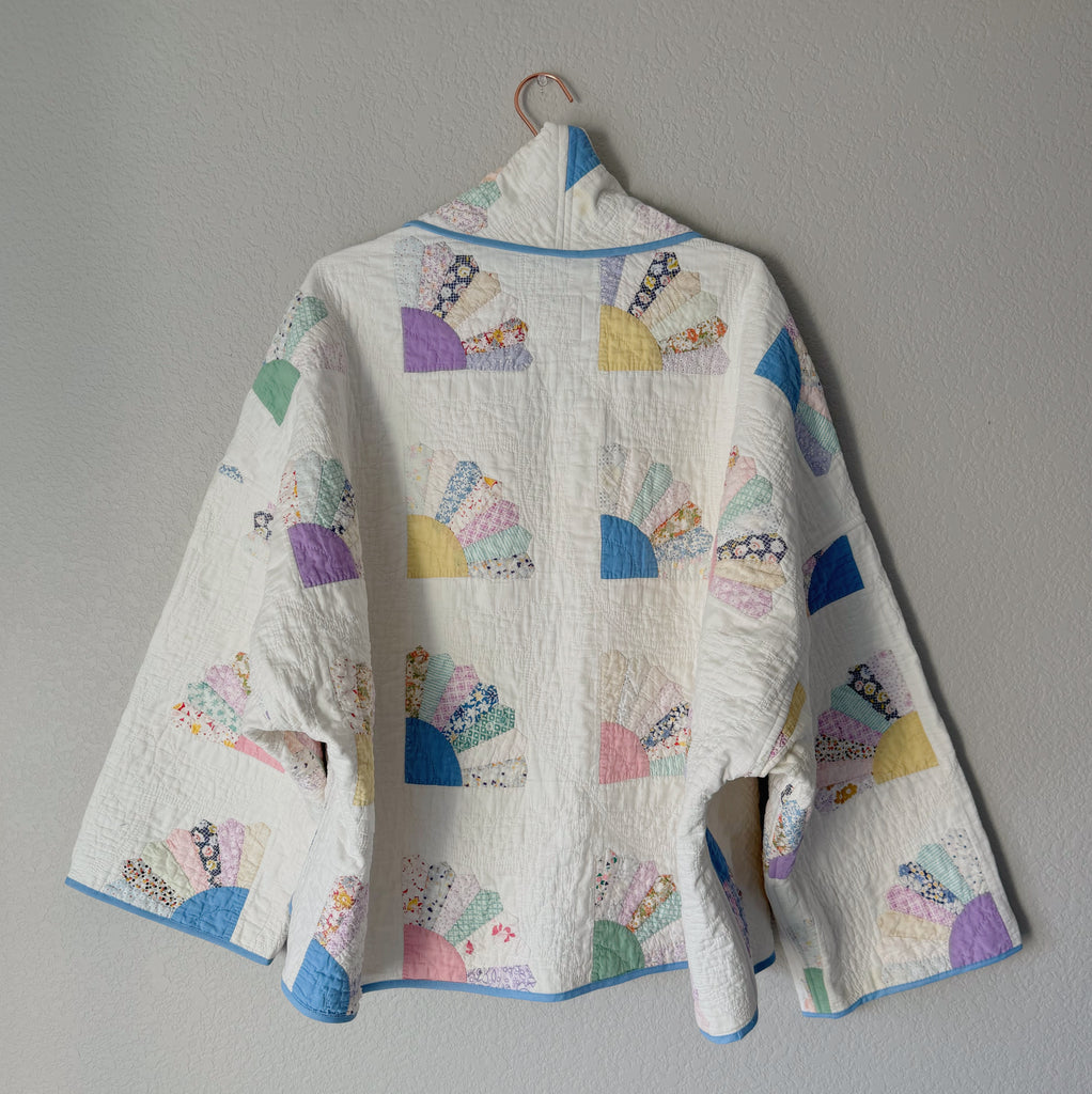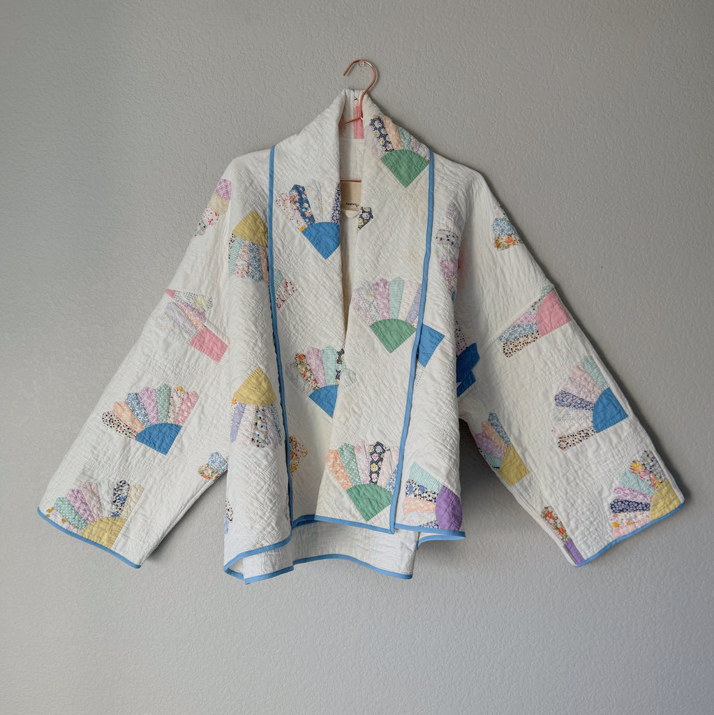 Please note that all of our jackets are made from antique quilts and the fabric reflects this. Our fabrics are sometimes older than 100 years and we believe that makes them perfectly imperfect. We recommend spot cleaning if necessary.