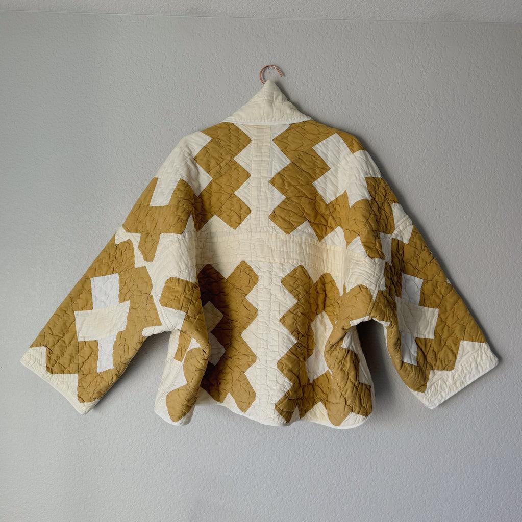 Please note that all of our jackets are made from antique quilts and the fabric reflects this. Our fabrics are sometimes older than 100 years and we believe that makes them perfectly imperfect. We recommend spot cleaning if necessary.