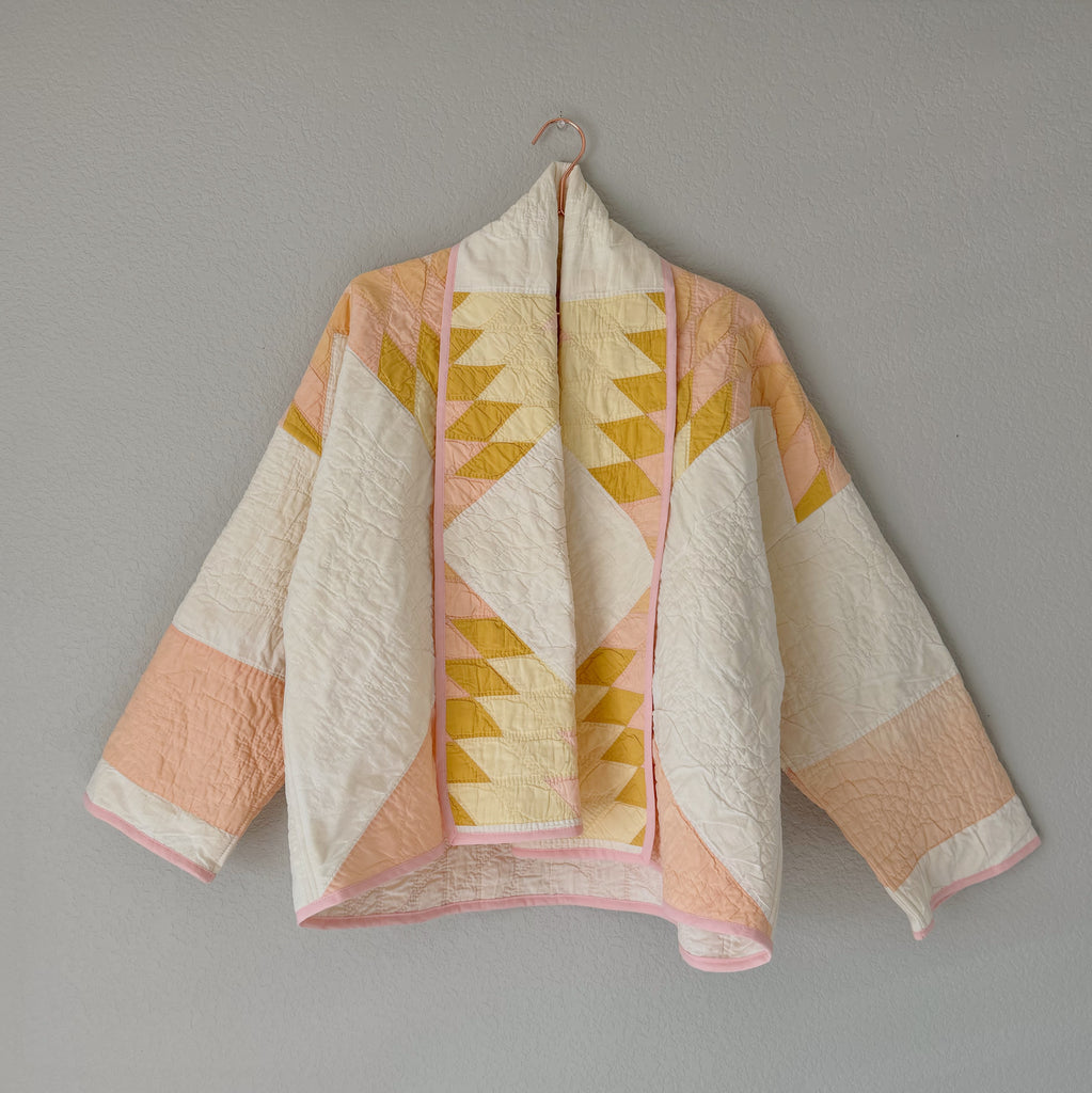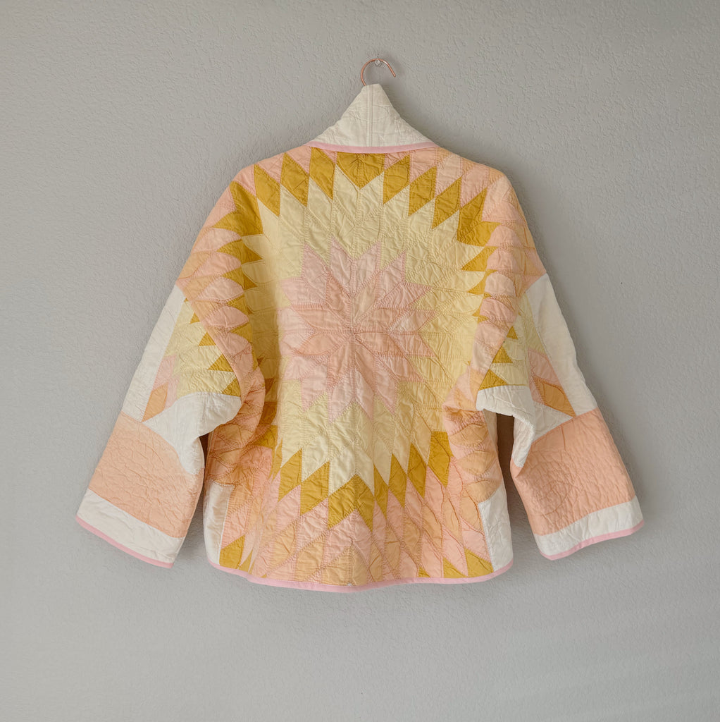 Please note that all of our jackets are made from antique quilts and the fabric reflects this. Our fabrics are sometimes older than 100 years and we believe that makes them perfectly imperfect. We recommend spot cleaning if necessary.