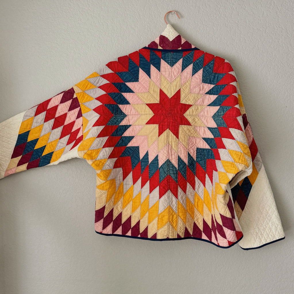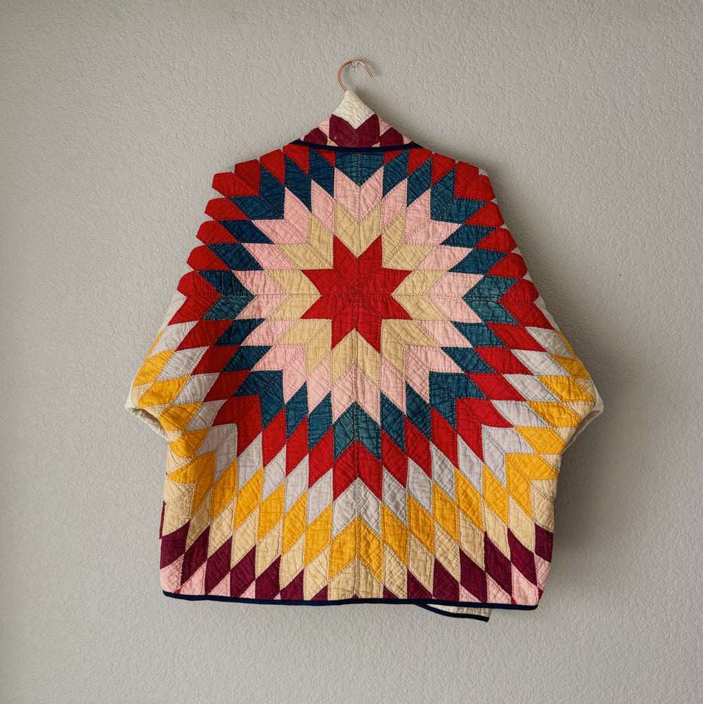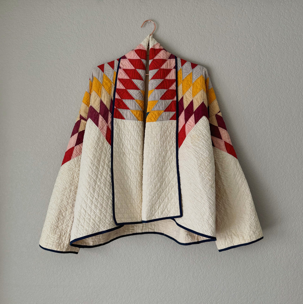 Please note that all of our jackets are made from antique quilts and the fabric reflects this. Our fabrics are sometimes older than 100 years and we believe that makes them perfectly imperfect. We recommend spot cleaning if necessary.