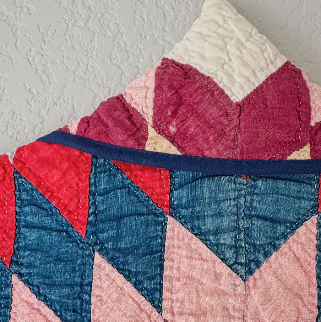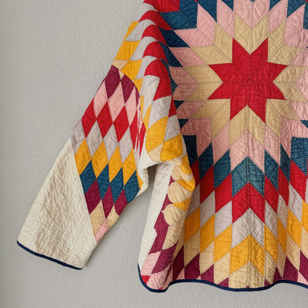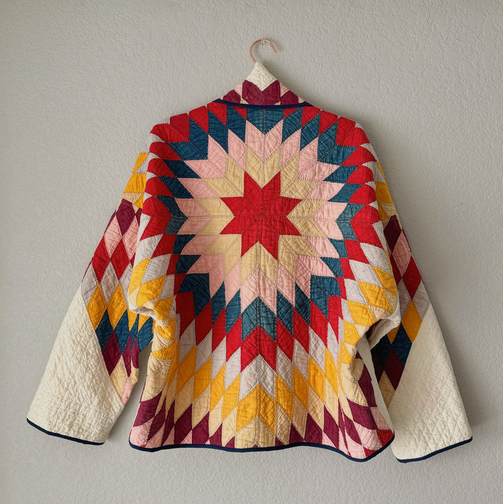 Please note that all of our jackets are made from antique quilts and the fabric reflects this. Our fabrics are sometimes older than 100 years and we believe that makes them perfectly imperfect. We recommend spot cleaning if necessary.