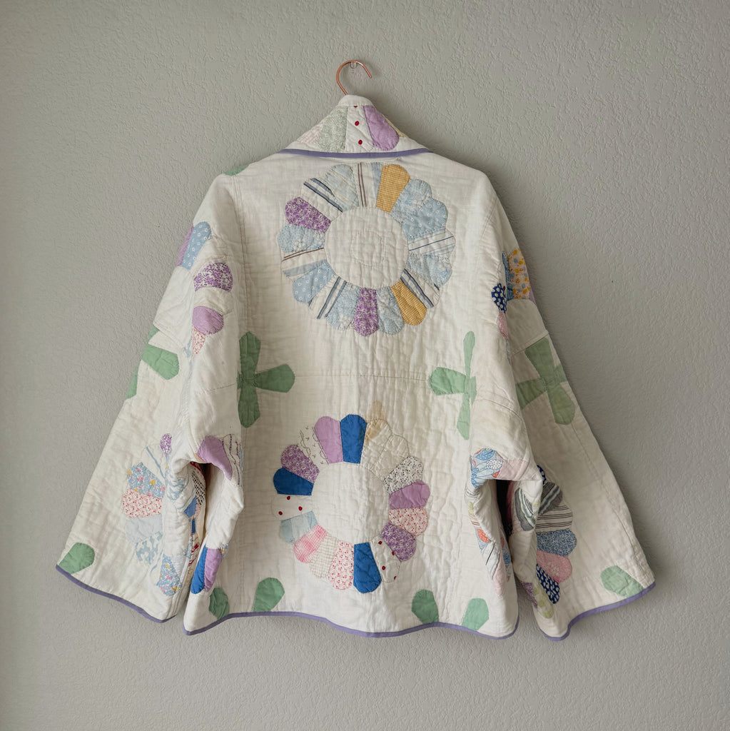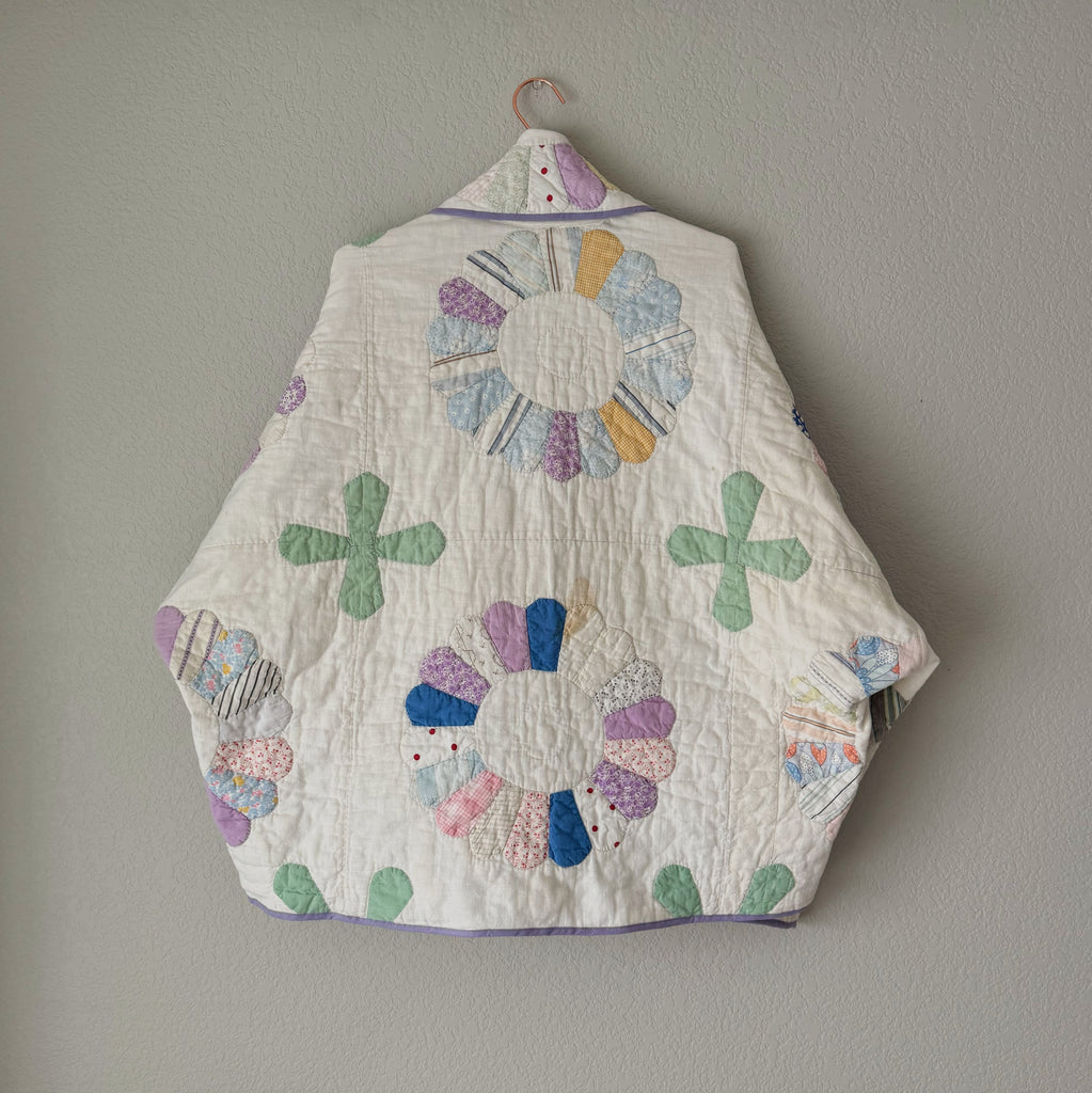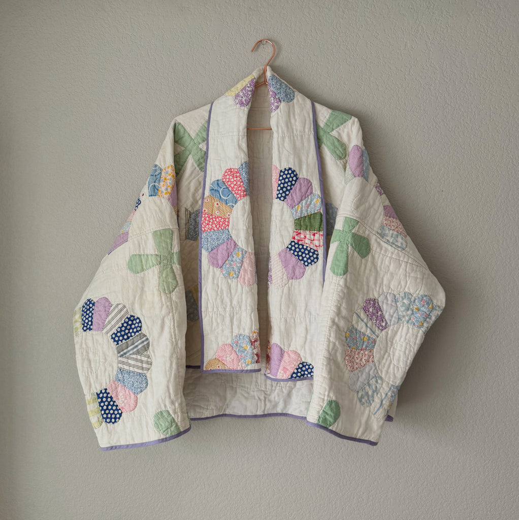 Please note that all of our jackets are made from antique quilts and the fabric reflects this. Our fabrics are sometimes older than 100 years and we believe that makes them perfectly imperfect. We recommend spot cleaning if necessary.